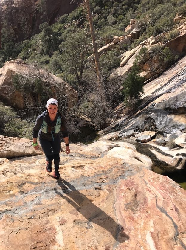 You’ll be walking up slabby slick-rock and making some potentially heady, bouldery moves through the canyon, so wear comfortable, closed-toed shoes with good grip. Climbing approach shoes are perfect for something like this, but trail running shoes and hiking shoes will also work well. I wore a pair of Hoka trail running shoes and they did surprisingly well.